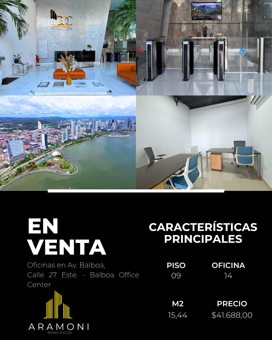 Se vende oficina ubicada en el prestigioso edificio Balboa Office Center, sobre Avenida Balboa, una de las zonas corporativas más exclusivas y de mayor movimiento en la ciudad.