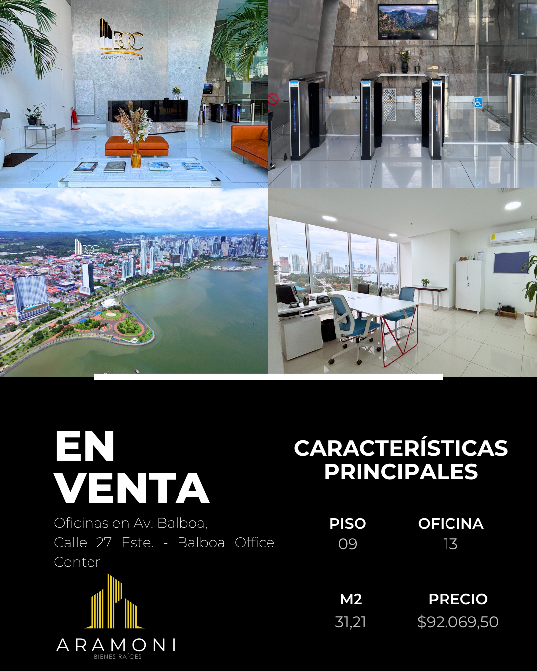 Se vende oficina ubicada en el prestigioso edificio Balboa Office Center, sobre Avenida Balboa, una de las zonas corporativas más exclusivas y de mayor movimiento en la ciudad.