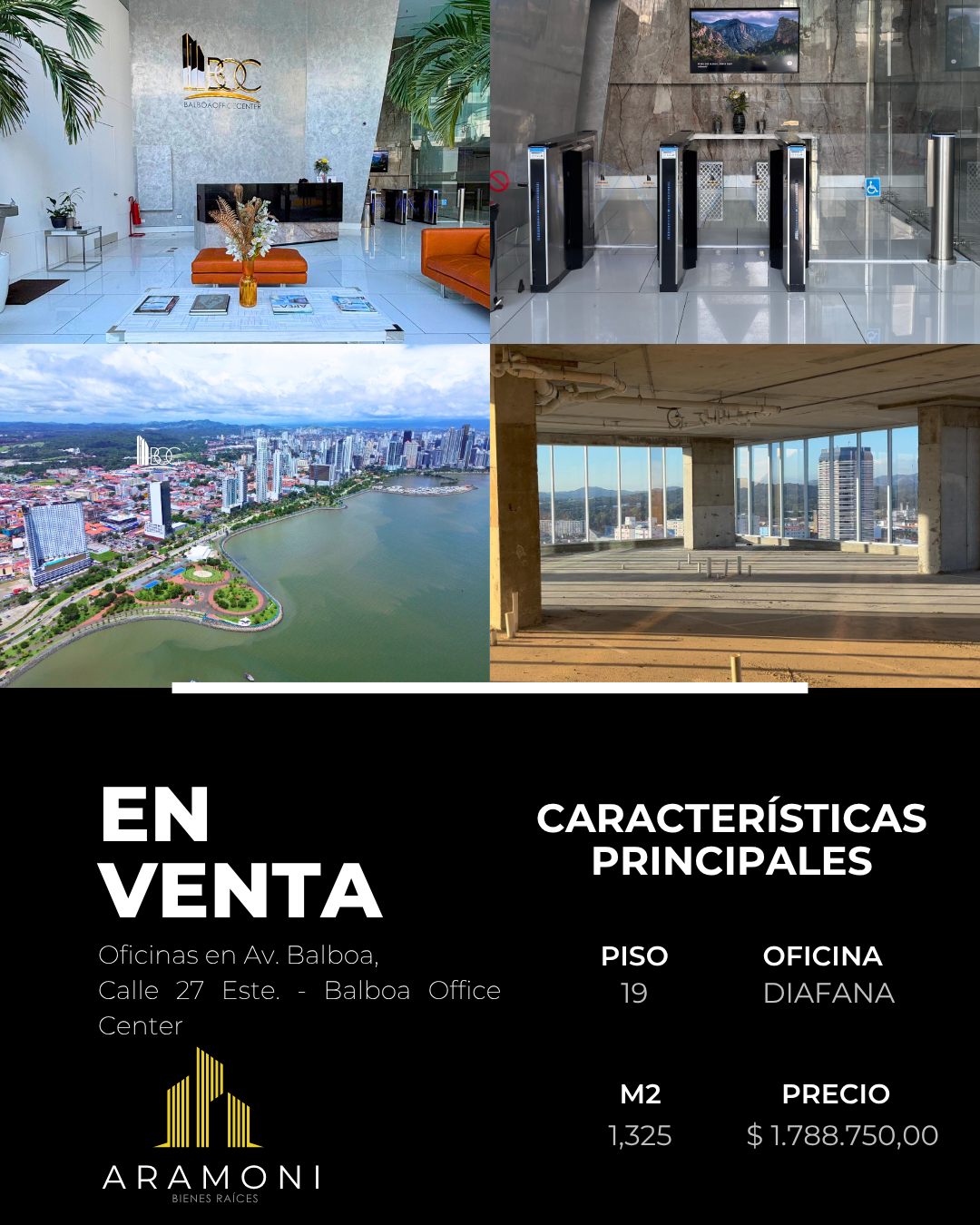 Amplia oficina de 1,325 m² en obra gris, ideal para diseñar y adaptar a las necesidades de su empresa. Ubicada en el piso 19 del prestigioso Balboa Office Center, con una ubicación privilegiada frente a la Cinta Costera.